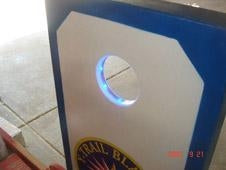 Add lights to your cornhole boards! These LED lights mount underneath the hole on your boards, and are powered by a 9V battery and a switch. they run for 12-15 continuous hours, and offer plenty of light for you to play into the early hours of the morning. Each order is 2 light sets. If you add these to an order for any corn hole board set, we install the lights on your cornhole board for free!