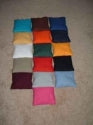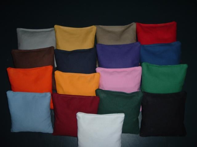 Our regulation bags are 6"x6", made from sturdy duck canvas, and filled with 15-16 oz of shelled corn (regulation standard is 14-16oz). They are professionally sewn with color matched thread, and only one visible seam. Take a look at the pictures, these bags stack up to the best and are virtually unbreakable. Come in Sets of 8, 4 of one color and 4 of another color. Contact us for bulk orders.